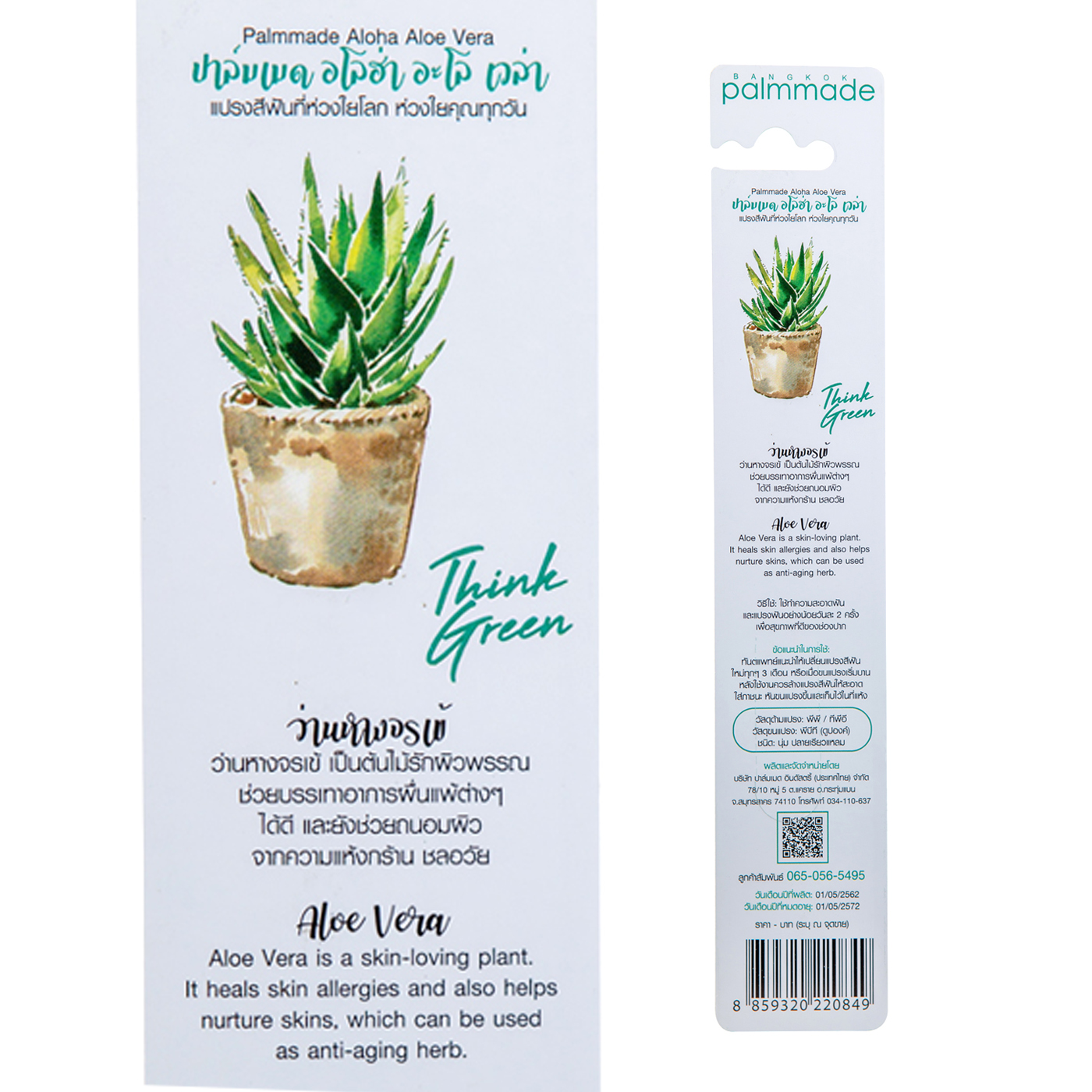 "Palmmade Aloha Aloe Vera Toothbrush" หรือ "แปรงสีฟัน ปาล์มเมด อโลฮ่า" มีหัวแปรงเรียวเล็กสามารถเข้าถึงได้ทุกมุมปาก โดดเด่นด้วยขนแปรงที่เรียวเล็กและนุ่มเป็นพิเศษ มาพร้อมปุ่มยางกันลื่นที่ด้ามแปรงทั้ง 2 ด้าน ช่วยให้จับง่าย ไม่ลื่นหลุดมือ แปรงถนัดทั้งฟันบนและฟันล่าง