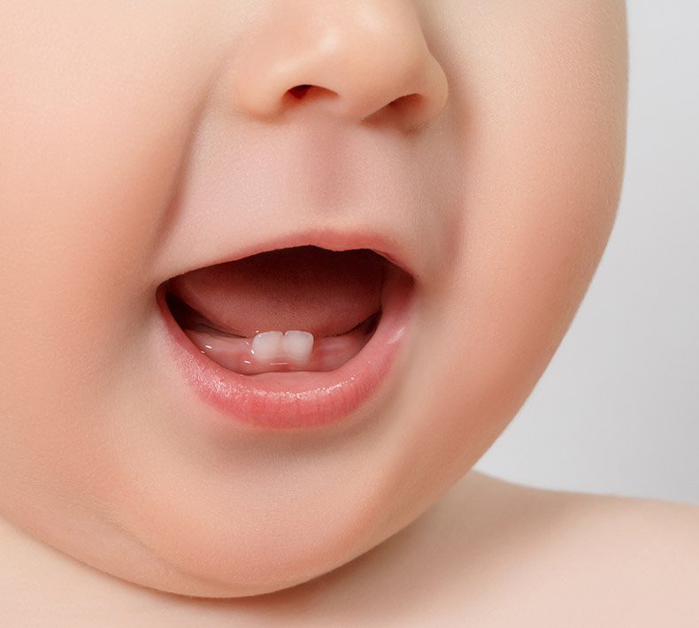 ทารกทุกคนมีหน่อฟันที่เจริญอยู่ใต้เหงือกตั้งแต่ในท้องแม่และพร้อมจะเริ่มงอกเมื่ออายุครบ 6 เดือน ฟันหน้า 2 ซี่ล่างจะงอกก่อน ตามด้วยฟันหน้าด้านบน 4 ซี่ และจากนั้นจึงเป็นฟันหน้าล่างอีก 2 ซี่ ส่วนฟันที่เหลือจะงอกครั้งละสองซี่ ซี่ละข้าง และฟันน้ำนมนี้จะงอกครบทั้งหมด 20 ซี่เมื่อเด็กอายุ 3 ขวบ