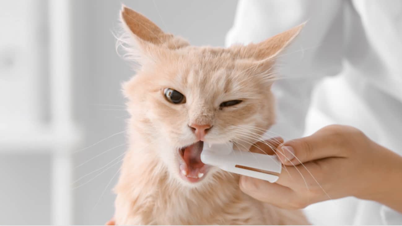 แปรงฟันให้น้องแมวเป็นประจำ จะช่วยป้องกันการเกิดหินปูนและลดกลิ่นปากได้อย่างมีประสิทธิภาพ แต่ต้องค่อยๆ ฝึกน้องแมวให้หัดแปรงฟันตั้งแต่เด็ก จะช่วยให้น้องแมวยอมรับการแปรงฟันง่ายกว่ามาฝึกตอนที่น้องแมวโตแล้ว โดยเริ่มฝึกได้ตั้งแต่ลูกแมวอายุประมาณ 2 เดือน เป็นต้นไป ที่สำคัญต้องใช้ยาสีฟันที่ทำออกมาสำหรับสัตว์เท่านั้น ไม่ควรใช้ยาสีฟันของคนมาแปรงให้กับน้องแมว เพราะน้องแมวอาจมีปัญหาจากการแพ้ฟลูออไรด์ที่เป็นส่วนประกอบในยาสีฟันของคนได้ เริ่มต้นฝึกน้องแมวแปรงฟันด้วยการใช้นิ้วถูที่ฟัน เมื่อน้องแมวยอมให้ใช้นิ้วถูฟันแล้วจึงเริ่มปรับมาใช้ผ้าก๊อซถูฟัน และเมื่อน้องแมวเริ่มชินก็ให้ใช้แปรงสีฟันสําหรับน้องแมวโดยเฉพาะแปรงฟัน หลังจากที่แปรงฟันให้น้องแมวแล้วอย่าลืมให้รางวัลกับน้องแมวด้วยอาหารเม็ดกรุบกรอบแสนอร่อยทุกครั้งด้วย ตรวจสุขภาพช่องปาก